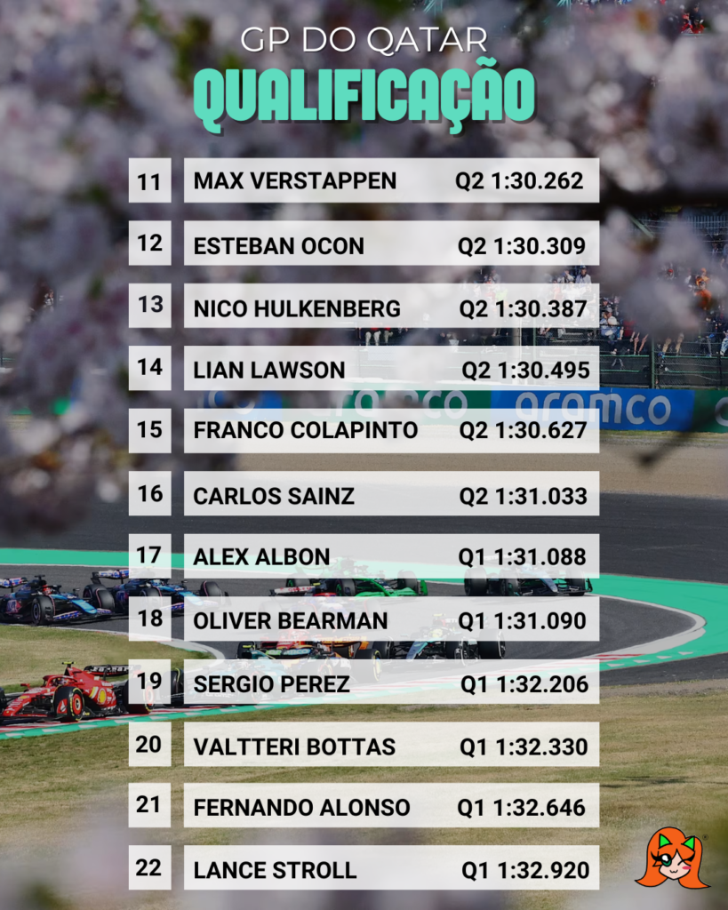 Enquanto isso, o grid completo revela uma mistura interessante de forças. A Mercedes ocupa a primeira fila, a McLaren aparece forte logo atrás, e a Ferrari tenta se aproximar com Leclerc e Hamilton. A Red Bull vive um momento instável, já que Max Verstappen não avança ao Q3 e larga apenas em 11º. Esse detalhe adiciona um tempero especial, porque Suzuka costuma punir erros e premiar ousadia. Assim, a corrida promete disputas diretas desde a primeira curva.