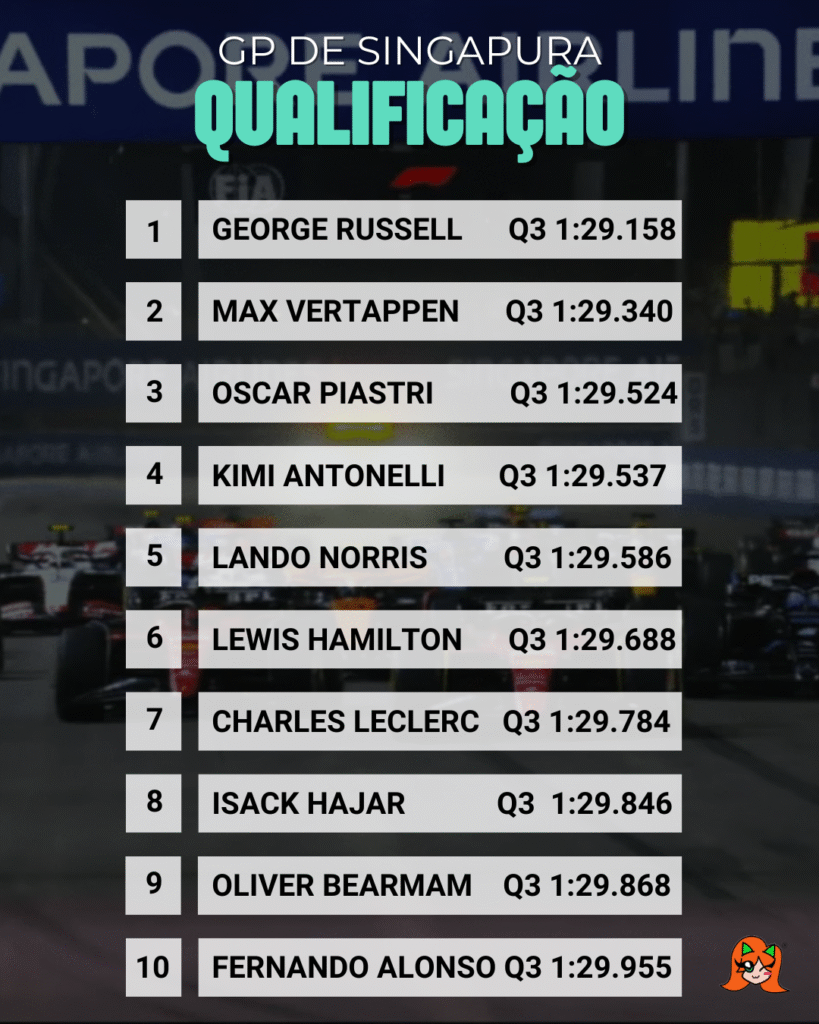 Agora, os olhos se voltam para a corrida deste domingo. Com Russell na frente e Verstappen logo atrás, o GP de Singapura promete fortes emoções.